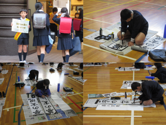 6年生が書き初めをしていました。真剣に集中して取り組んでいました。