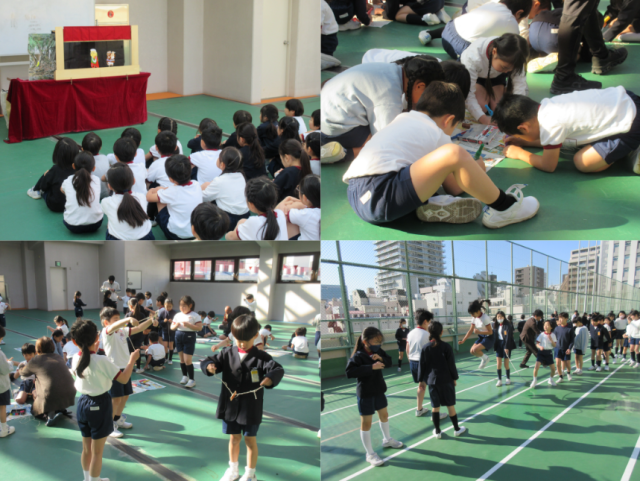 今日は、1年生と2年生で民話と伝承遊びの教室がありました。民話を聞いた後、松風ごまを作って回すのにチャレンジしました。松風のようにビュービューと回せたでしょうか。