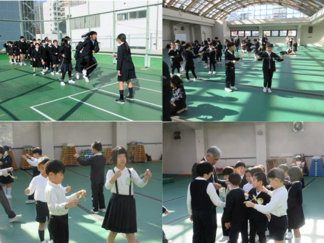 今年最初の長縄さんぽがありました。みんな元気になわを跳んでいます。