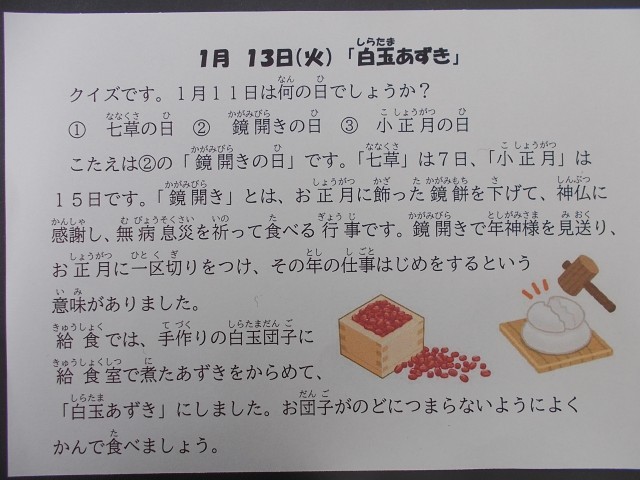 1月13日(火)今日の給食