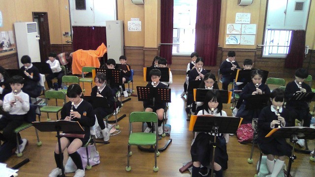 4年生は、学年合同合奏に向けて、合奏の練習をしています。今日は授業の最初は鍵盤ハーモニカとリコーダーで合奏をしました。