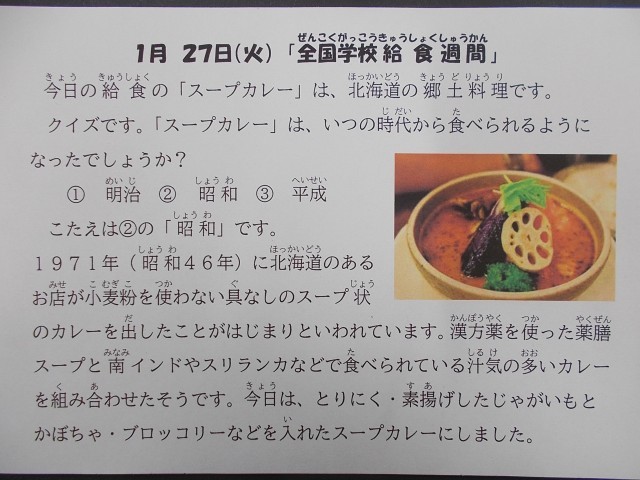 1月27日(火)今日の給食