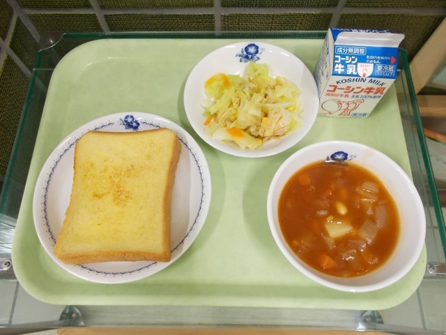 サラダには、東京都産のキャベツを使用しました。やわらかく、甘味を感じられるキャベツで、レモンとしょうゆのドレッシングとの相性もばっちりでした。児童に人気のサラダです。