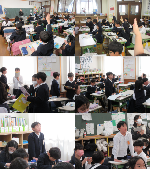 次に、4年生の社会の授業を見ました。世界とつながる大田区について、様々な資料をもとに学習問題を考えていきました。積極的に手を挙げて自分の考え等を発言していました。