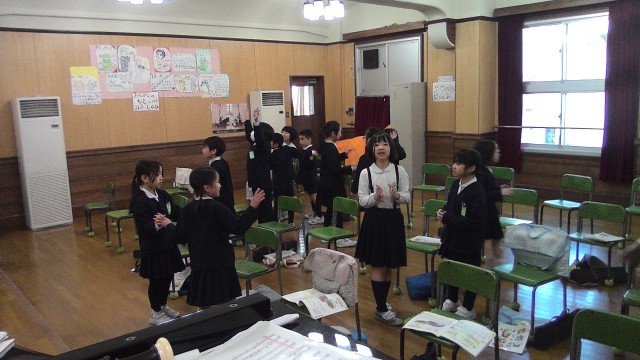 2年生は、合奏「こぐまの2月」を学習しています。今日は主役の旋律の鍵盤ハーモニカでの実技検定の後、