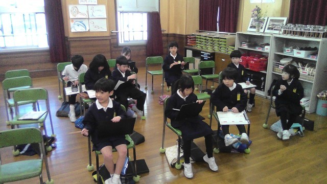 1年生は鑑賞「シンコペーテッドクロック」を学習しました。実際に曲に合わせてウッドブロックやトライらアングルを演奏しながら、ウッドブロックやトライアングルが表す時計の様子を想像しながら鑑賞しました。4年生は学年末の合奏の発表に向けて学習をしています。休み時間にも積極的に練習をして毎日頑張っています。