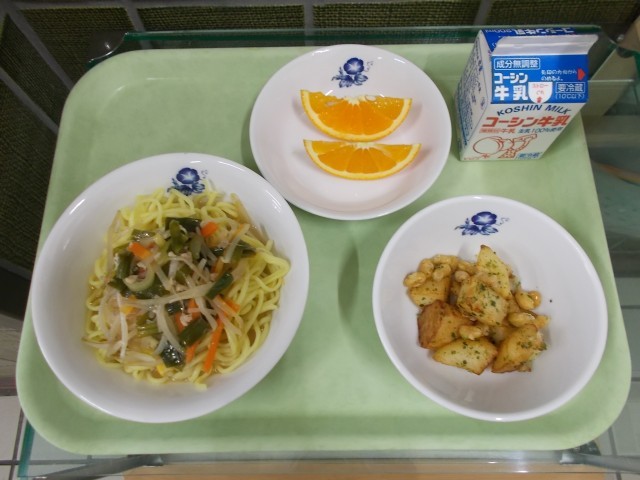 今日は6年生のリクエスト給食「みそラーメン」と「青のりポテトビーンズ」でした。