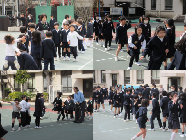中休みには長なわさんぽがありました。みんな気持ちよくなわを跳んでいました。