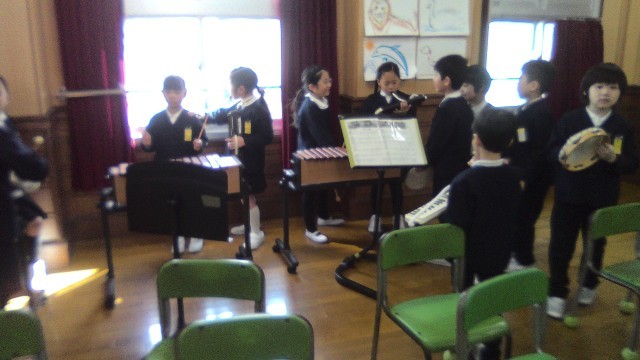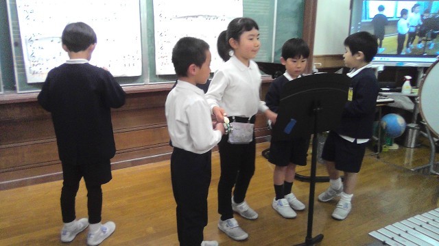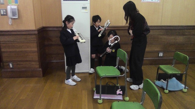 1年生は、入学式の前に行われるアトラクションの合奏のパート練習をしました。