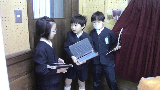 前回学習した合奏のように、タブレットを使って組み立てていきました。