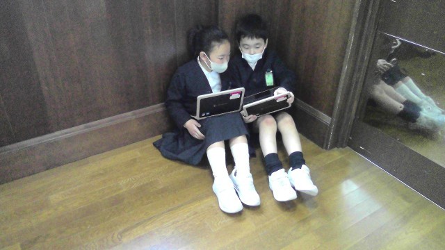 今日は2~3人組になって、自分たちでテーマを決めて、声を録音し、それを音素材として、
