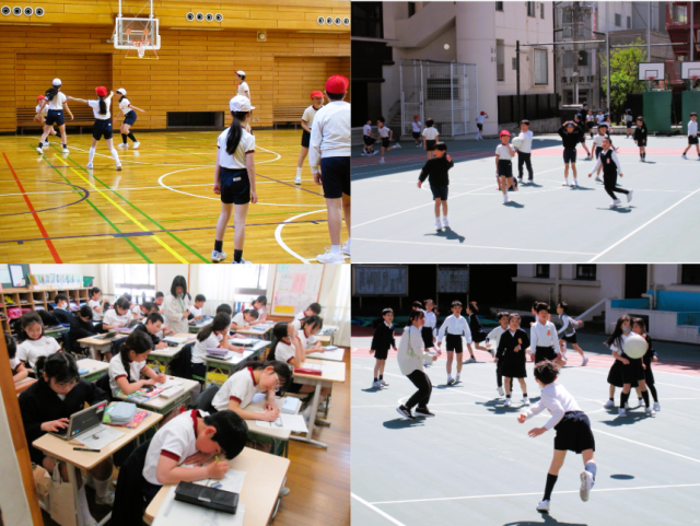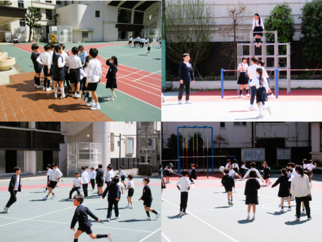 今日はとても良い天気で休み時間に多くの児童が校庭で遊んでいました。