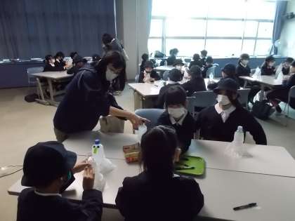 「かんたん防災グッズ工作」としてペットボトルランタンや紙食器づくりにも取り組みました。身近なものがいざというときに役に立つということを知ることができました。