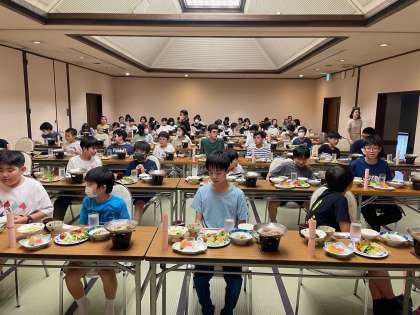 創業百年旅館の一心館。霧ヶ峰学園とは異なる趣きに子供たちも興奮気味。そして豪華な夕食にも歓喜の声!何回もご飯をおかわりした人がいました。食後、少し休んで温泉に。まったりした夜を楽しく元気に過ごしています。