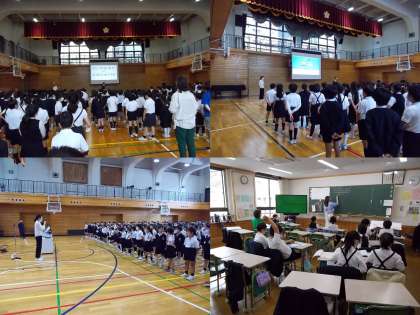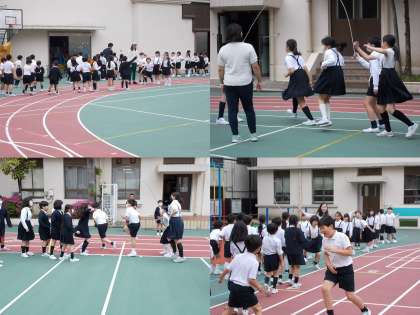今日の児童朝会は副校長先生のお話でした。MottoSokkaでたくさん本を読んでほしいです。電子黒板を活用した授業が多く行われています。3年生は先週行った校外学習のコースを地図で確認していました。1年生は、算数「いくつといくつ」を勉強していました。中休みは、今年度2回目の「長なわさんぽ」。さすが、6年生は上手です。