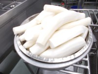 練馬大根スパゲッティキャベツとコーンのサラダ小松菜ケーキ牛乳今日は、江戸東京野菜...