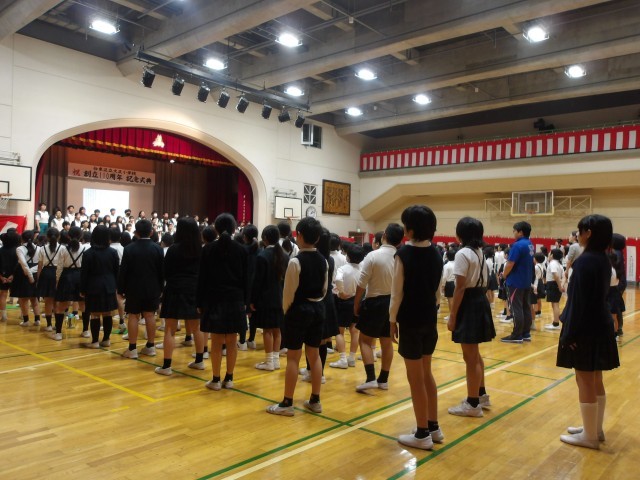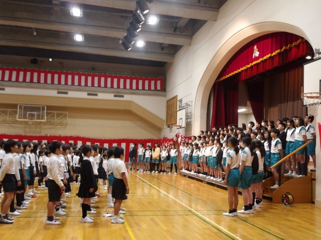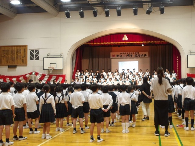 10月20日(月)の昼の時間に、音楽昼会を行いました。110周年記念集会と記念式典を24日(金)、25日(土)に控えているので、全校で創立110周年をお祝いする歌を歌いました。曲は「校歌」「はばたけみんなのゆめ」「110周年記念歌はじまりの場所」の3曲でした。みんなで声を合わせて歌って、お祝いの雰囲気を高めました。