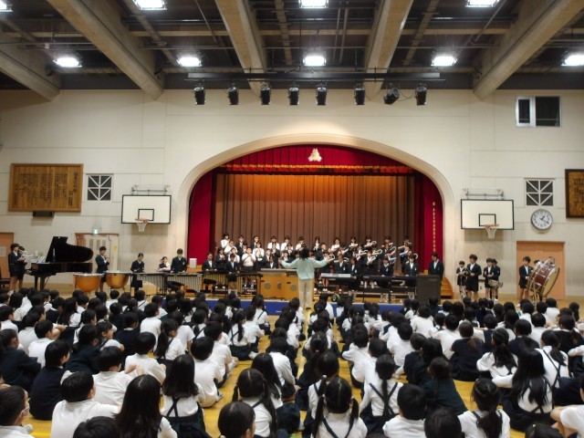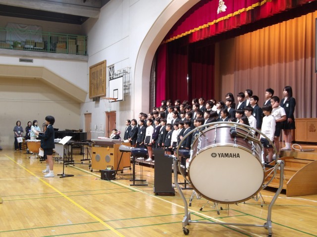 10月31日(金)の昼時間に、音楽昼会を行いました。11月4日(木)に浅草公会堂で開催される区の連合音楽会に出演する5年生が、当日演奏する曲を発表しました。曲目は、合唱「小さな勇気」、合奏「ホーンテッドマンションより グリムグリニングゴースト」「エレクトリカルパレードより バロックホーダウン」の3曲でした。どれもとても素敵な演奏で、1~4、6年生は真剣な眼差しで5年生の演奏に耳を傾けていました。