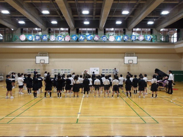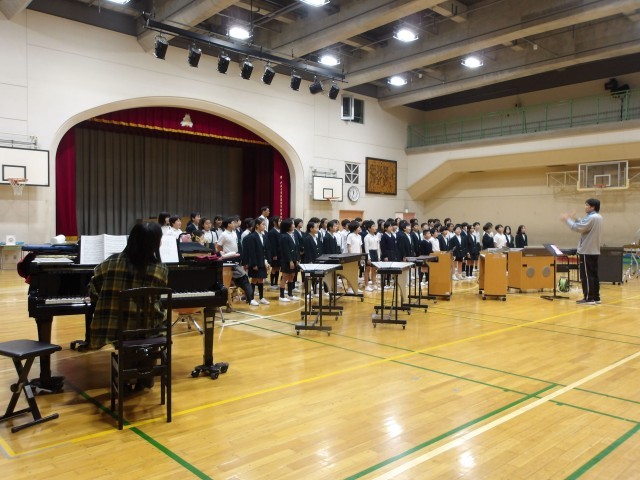明日11月6日(木)には、浅草公会堂で連合音楽会が開催されます。大正小学校では、5年生が学校を代表して、合唱1曲と合奏2曲を発表します。前日の5日(水)には、体育館のフロアを舞台に見立て、入場から演奏をして退場するまでの流れのリハーサルをしました。とても素敵に仕上がっていたので、ぜひ本番も頑張ってほしいと思います。