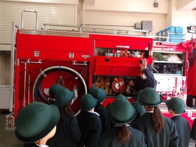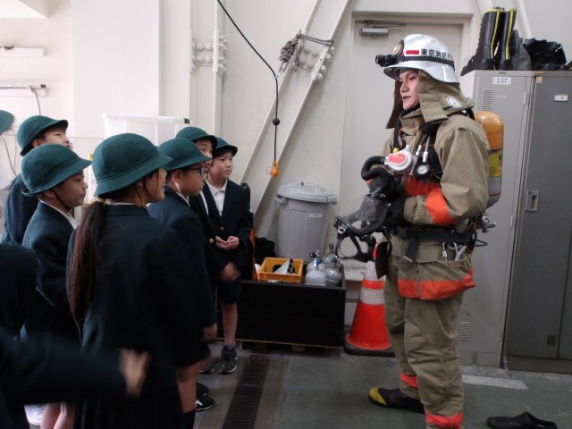 11月14日(金)に、3年生は社会科見学で上野消防署下谷出張所に行きました。クラスごとに行きましたが、消防車の装備や消防服の説明を受けたり、消防署の中にある食堂やジムを見学させてもらったりしました。子供たちにとっては、初めて見たり聞いたりすることばかりで、みんな興味津々で見学をしていました。