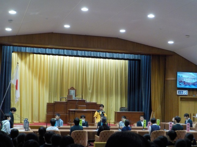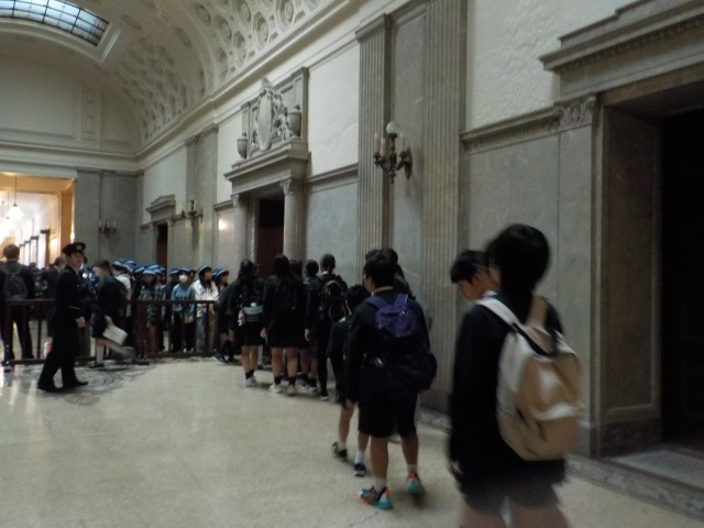 11月13日(木)に、国会見学及び、参議院特別体験プログラムを体験しました。当日は予算会議が開かれており、スタッフや警備の方が大勢いる中での見学となりました。残念ながらゆっくりと見ることはできませんでしたが、「ここが政治の中心」だという雰囲気は、しっかりと感じることができたと思います。参議院特別体験プログラムでは「子ども読書活動推進法案」の提案→質疑応答→法案提出決定までを「議員」として体験しました。特別出演の8名も堂々とした態度で立派でした。