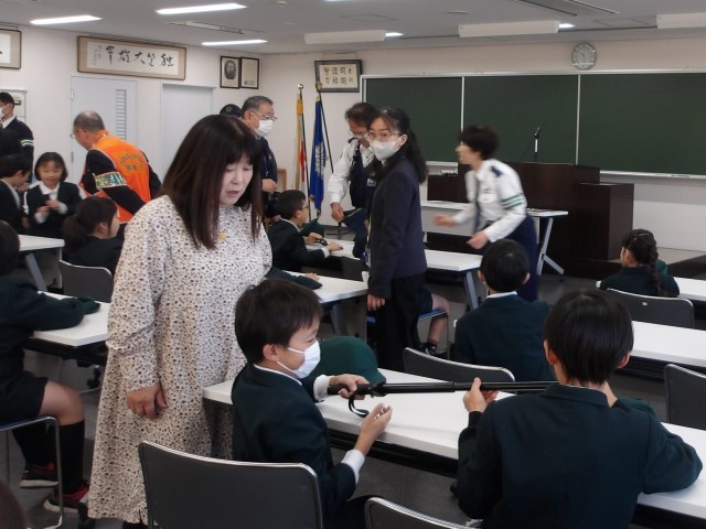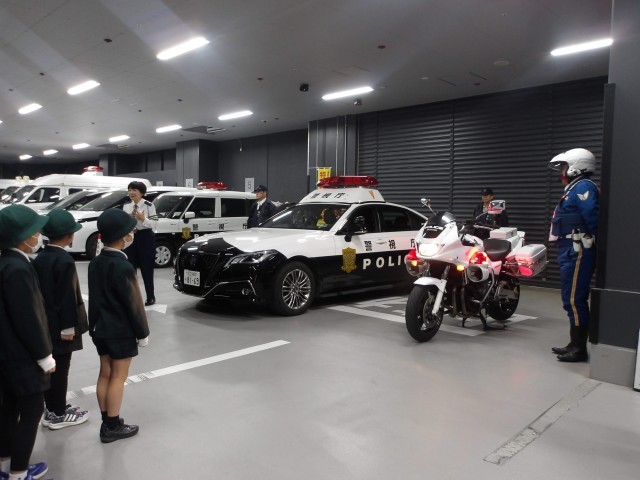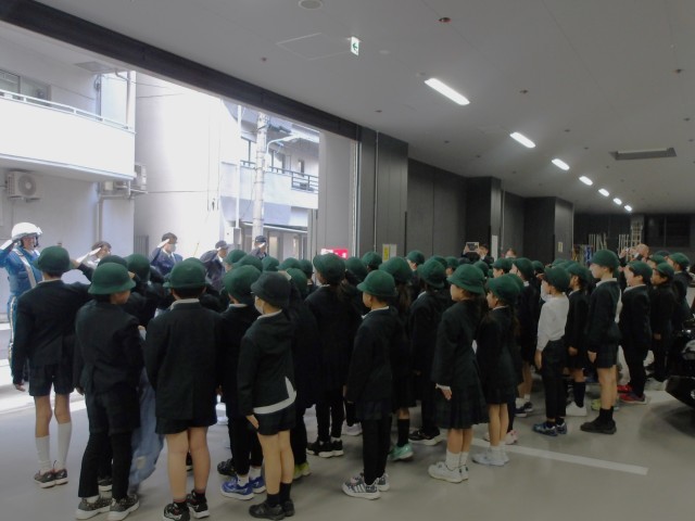 12月10日(水)に、3年生は社会科の学習で下谷警察署に見学に行きました。最初にお話をいただいた後に、拳銃や警棒、防刃チョッキを実際に見たり触ったりさせてもらいました。次に駐車場に移動して、白バイやパトカーを見たり、サイレンの音を聞かせてもらったりしました。最後には敬礼の仕方を教えてもらい、全員で敬礼をしてお別れをしました。実際に警察署を訪れて、体験から学ぶことができてよかったです。