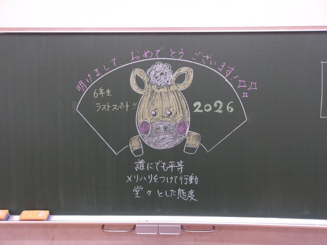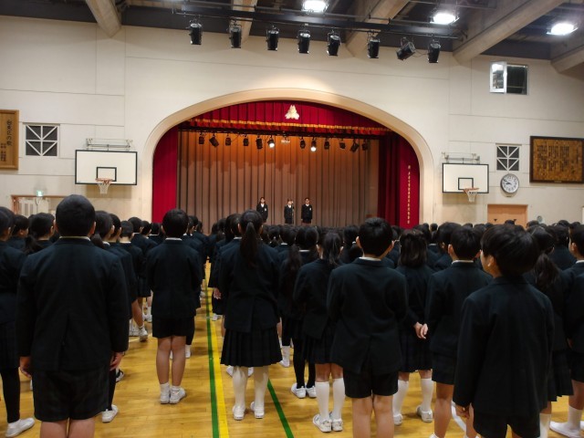 1月8日(木)に、3学期の始業式を行いました。8時40分開始でしたが、開始時刻前には全校児童が体育館に集合し、静かに開始を待つことができました。式に臨む態度も大変立派でした。終了後は、各学級で一人一人が3学期のめあてを決めたり、学級の当番活動を話し合ったて決めたりしていました。3学期はとても短いですが、学習も生活も一生懸命頑張って充実した学期にしてほしいです。