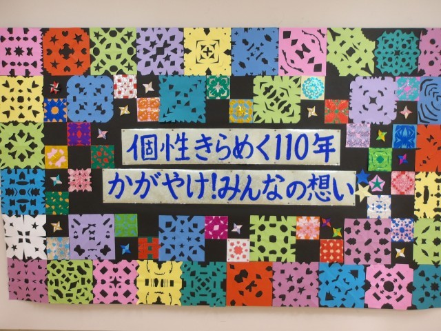 1月23日、24日に、創立110周年記念展覧会を開催しました。ランチルーム前から地下中央階段までの通路、はばたきの広場、そして体育館に子供たちの素敵な作品を展示して、ご来校した皆様にご鑑賞いただきました。一つ一つの作品の出来映えにはもちろん、展示方法や空間のプロデュースなどにもお褒めの言葉をいただきました。5~6年他の作品を紹介します。
