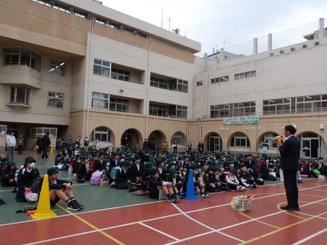 2月28日(木)の5時間目終了後に、学期に1回の子供安全の日として集団下校を行いました。当日は。速やかに全校が校庭に集まり、担当の先生の話も静かに聞くことができました。非常時にはお迎えに来ていただいて引き渡しのこともありますが、集団下校を活用することもあるので、よい訓練になりました。