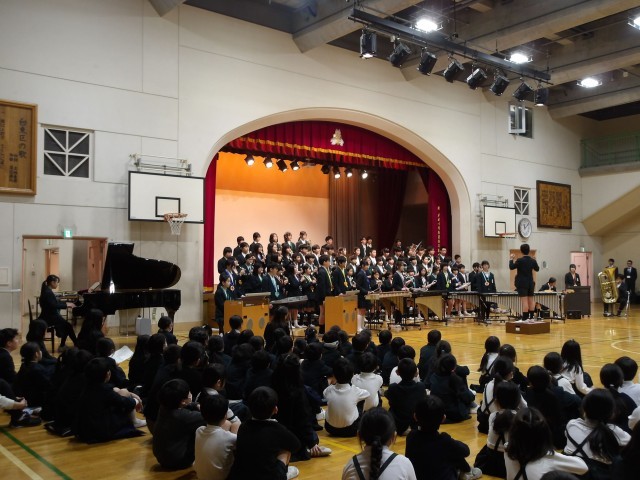 2月26日(木)に、6年生を送る会を実施しました。当時は各学年からの出し物や言葉で6年生の卒業をお祝いし、6年生はお返しに素敵な合奏を演奏しました。1~5年生の合唱や校旗の引き継ぎ式も行いました。終始和やかな雰囲気の中で会が進行し、とても素敵な時間を全校で共有することができました。