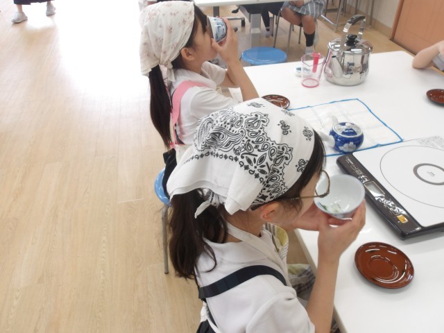 班のメンバーと協力しながら準備をして、おいしいお茶を飲むことができました。