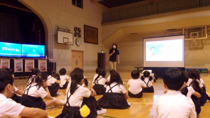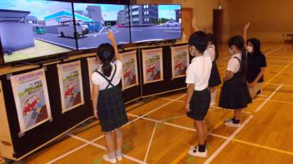 9月16日に講師を招いて歩行者シミュレータを実施し、安全な道路の渡り方を学びました。子ども達にとっても身近なテーマであったため、最後まで真剣に話を聞く姿が見られました。後半には、画面を見ながら歩行シミュレーションを行いました。教わったことを生かして手を挙げたり、よく確認をしたりしながら取り組む姿が立派でした。