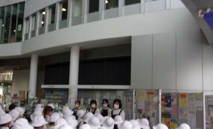 中央図書館の見学をしました。学校の図書館と違って、公共の施設である中央図書館には、たくさんの人が利用するための工夫がありました。