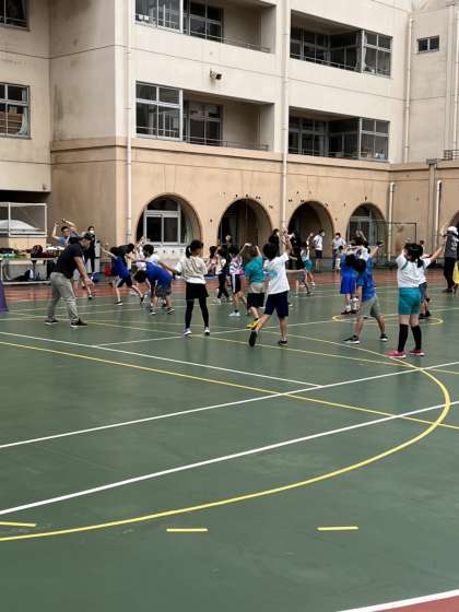 1〜2年生は体育館、3〜6年生は校庭で行いました。
