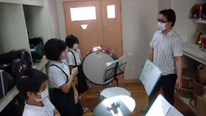打楽器のメンバーは、日頃の悩みを相談したり聞いたりして演奏を上達させました。今日、教えていただいたことを今後の演奏に生かしていけるように、日々練習を重ねていきます。