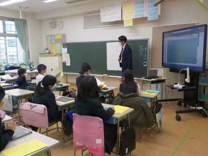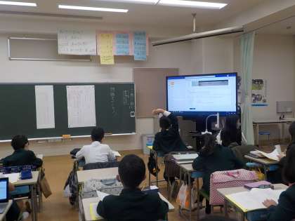 今回は、ICT活用研究授業として、一人一台端末を使って学習を進めました。
