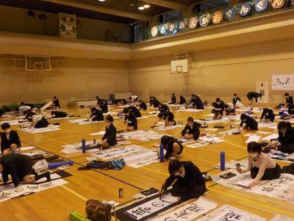年末を迎え、冬休みで行う書き初めの練習を行いました。
