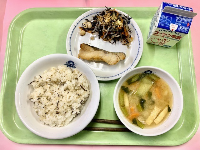 体を温める働きのあるしょうがを使ったごはん、魚へんに雪と書く“鱈(たら)”、大根おろしを雪に見立てた吹雪汁を作りました。