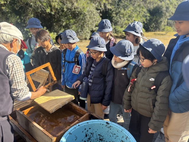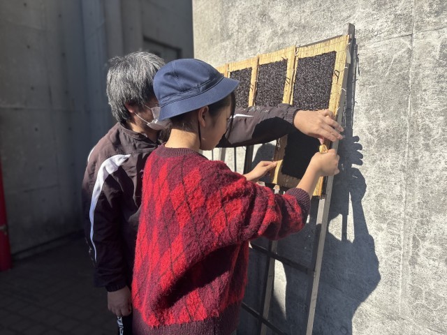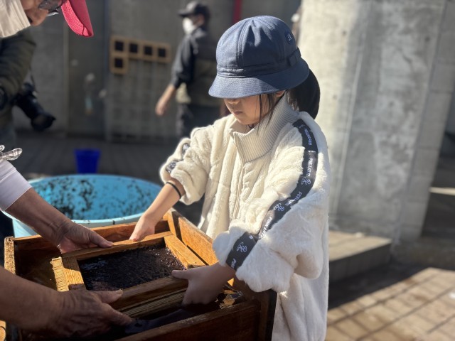富津公民館に到着し、海苔付け体験をしました。厚みを均一にするのが大変です。1枚30秒で作る職人技にみんな驚いていました。出来上がりが楽しみですね。
