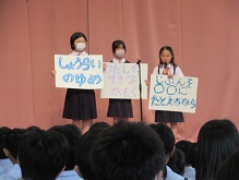 校長先生の話の後、スピーチ大会のテーマが発表されました。