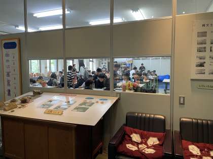 古代ロマン館にて、土器づくりに挑戦しています。材料を目の前に、やる気十分です。
