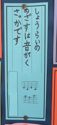 2年生は、玄関の掲示板に、七夕飾りを貼りました。