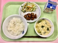 ●牛乳●ひじきの和風チャーハン●じゃがいものカレー炒め●たまごと小松菜のスープ●...