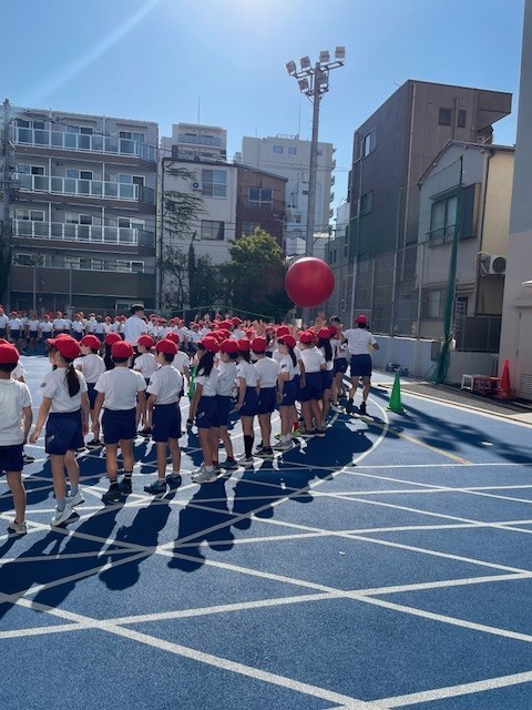 1年生にとっては、初めて大きな玉を転がしていく経験に
