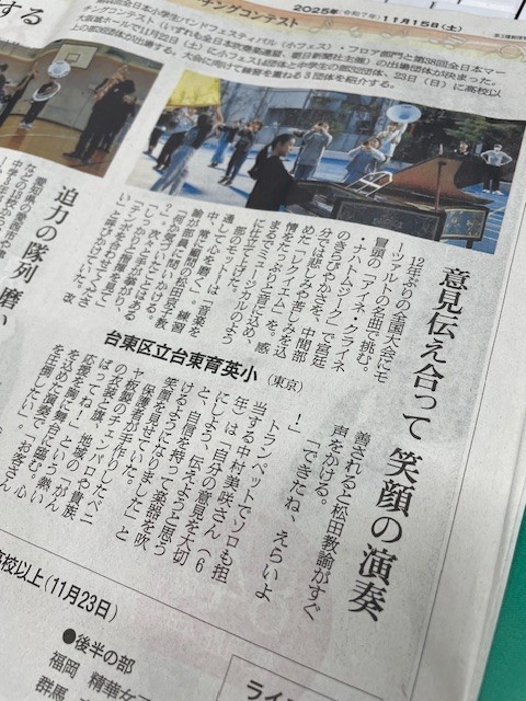 11/15 吹奏楽部 新聞に記事が掲載されました