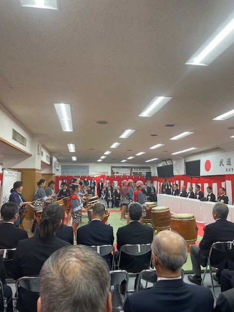 武道始め式のオープニングに、育英太鼓の皆さんの