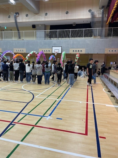 4年生が作った花のアーチを5年生が持ち、下級生の大きな拍手の中、6年生が入場しました。