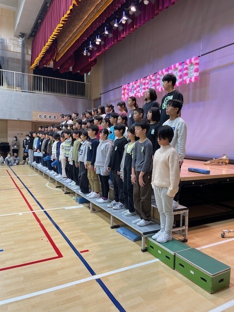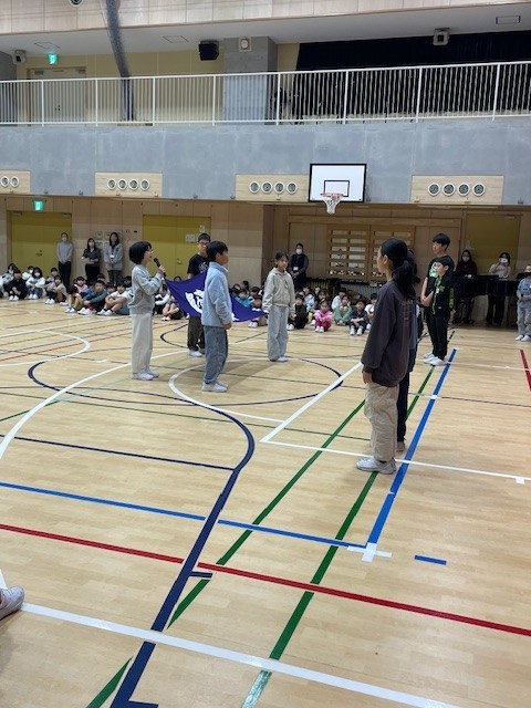 引き継ぎ式では、6年生から5年生に校旗が引き継がれ、5年生は緊張した面持ちで受け取りました。