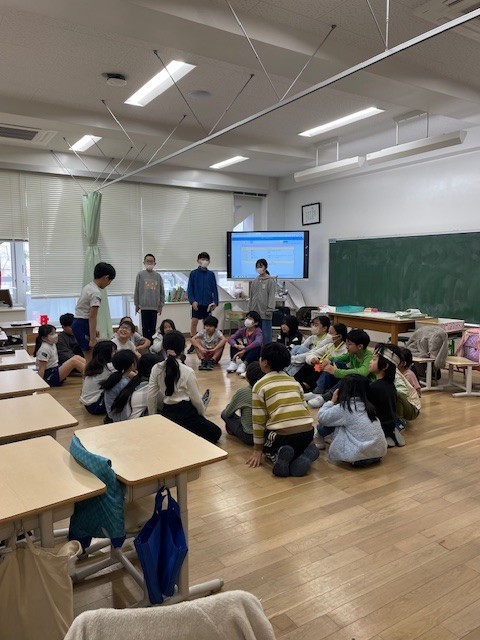6年生に代わり、5年生がリーダーとなって会を進行しました。緊張しながらも、6年生や下級生に楽しんでもらえるように会を盛り上げていました。
