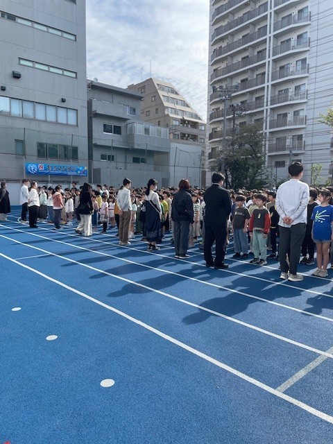 行われます。6年生の挨拶当番が、しっかりと全校児童の挨拶を